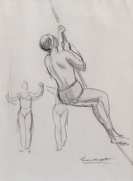 Knight was well known for her depictions of underprivileged subjects. Her paintings of circus workers, gypsies and young black women and children were well ahead of her time: in 1913 she was the first woman to paint a self-portrait with a nude model. She is best known for her work as an Official War Artist in WWII, most famously her painting of the Nuremberg trials of 1946.