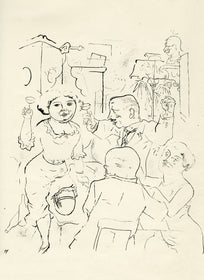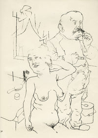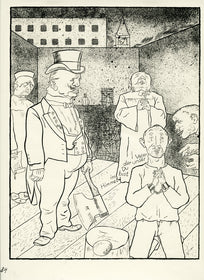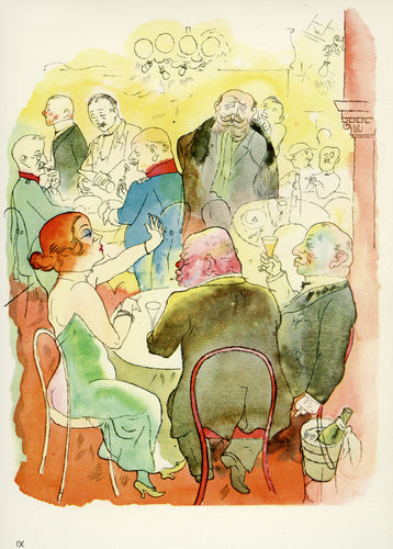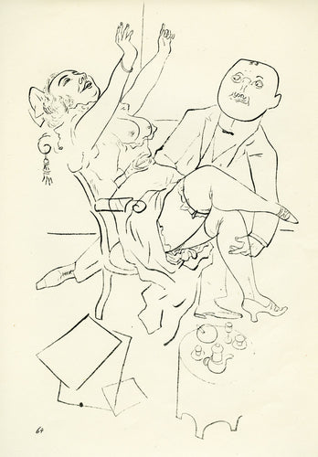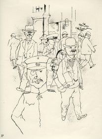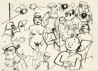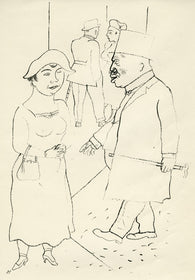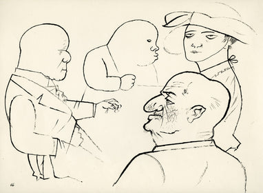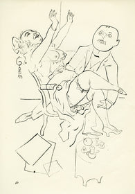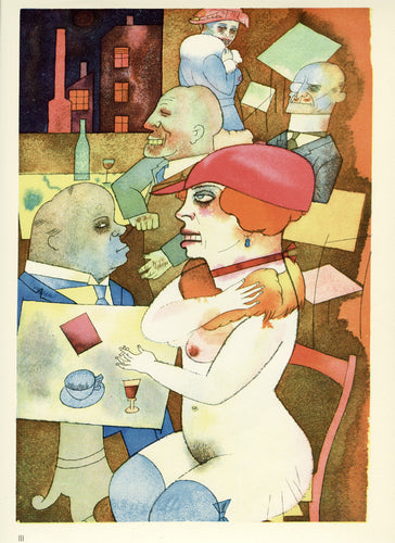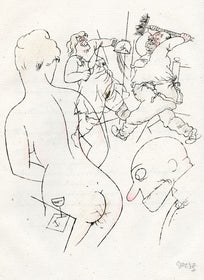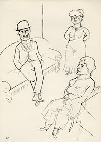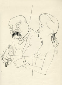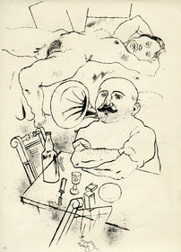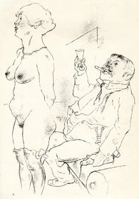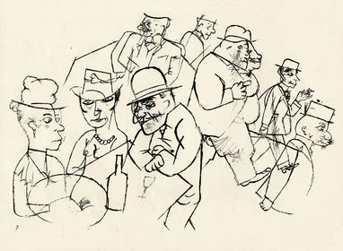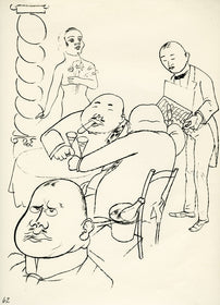 Grosz’s wartime experiences deeply affected his political outlook. He began to convey his hatred of German militarism in satirical images, though his subject matter was soon noticed by the authorities: Grosz was on one occasion prosecuted for indecent representations, which offend the sense of modesty and morality of a person of normal feeling. Inevitably, Grosz was hounded by the authorities and in 1933 he fled to America to settle permanently, returning to Berlin just once before his death there in 1959.
