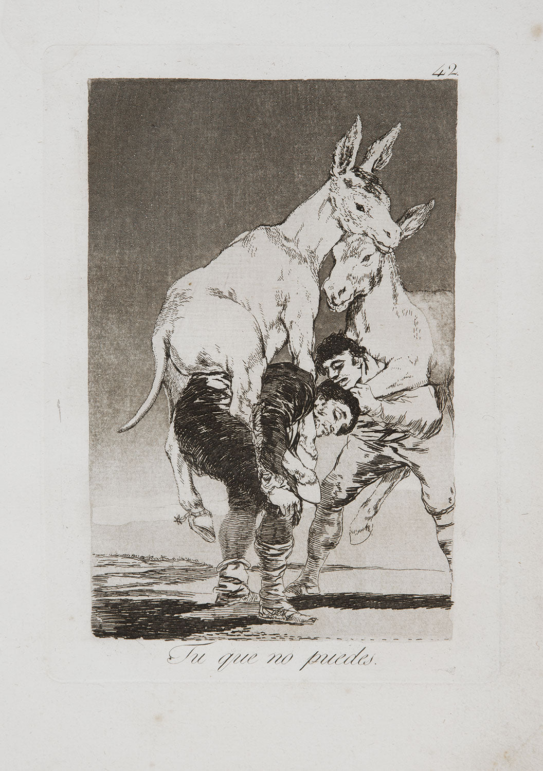 Now almost deaf, Goya’s work showed greater elements of fantasy and satirical observation. Completed in 1799, the Caprichos etchings analysed humanity’s flaws and provided the stylistic basis for his greatest and darkest work, The Disasters of War, composed during the Peninsular War. Goya later returned to Spain, but soon went into voluntary exile in Bordeaux, working until his death there in 1828.