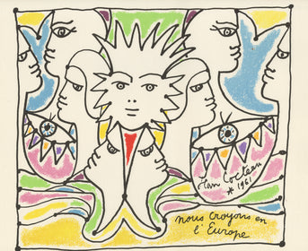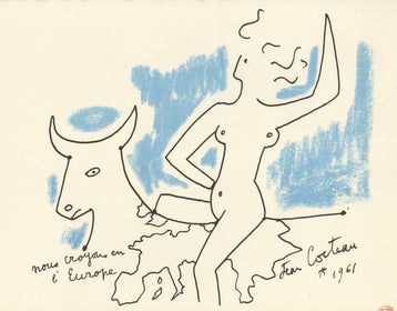 However, it was not until his later life that Cocteau added art to his catalogue of theatrical productions, films and writing, experimenting in pastels, prints and posters and eventually taking up easel painting in 1950. Cocteau loved the spectacle of bull-fights, often watching shows alongside Picasso, and the Taureaux set of lithographs they inspired was published in 1965, two years after his death.
