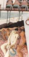 Human figures are important components in Large’s compositions, often men at work, and the work of Edward Burra and Stanley Spencer has been influential upon Large’s art. He has held several solo exhibitions and was commissioned to do a mural for Kings Cross Thameslink Station. In recent years he has lived and painted in Rutland and Malta.