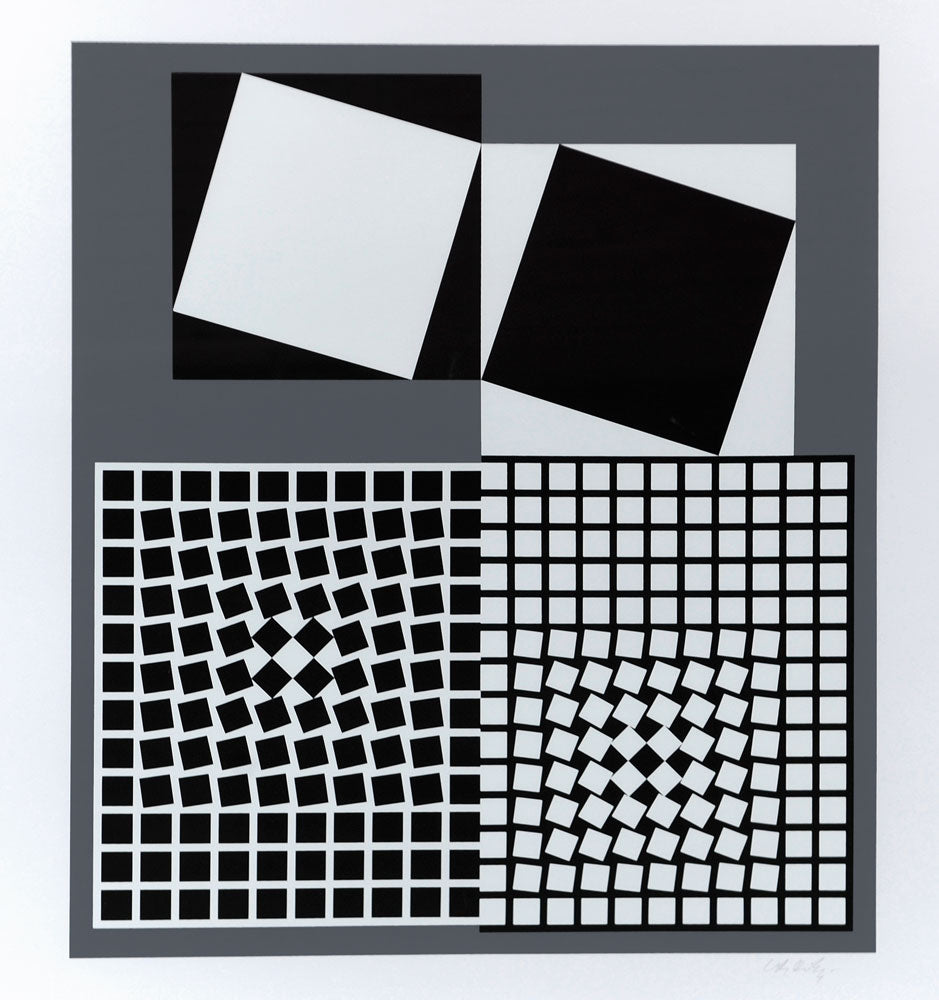 Vasarely was born in Pécs and grew up in Budapest. In 1927 he abandoned a medicine degree to learn traditional academic painting at the private Podolini-Volkmann Academy. During the 1950s, Vasarely wrote a series of manifestos on the use of optical phenomena for artistic purposes. Together with his paintings and prints, these were a great influence on younger artists. His motto was 'Art for all'.