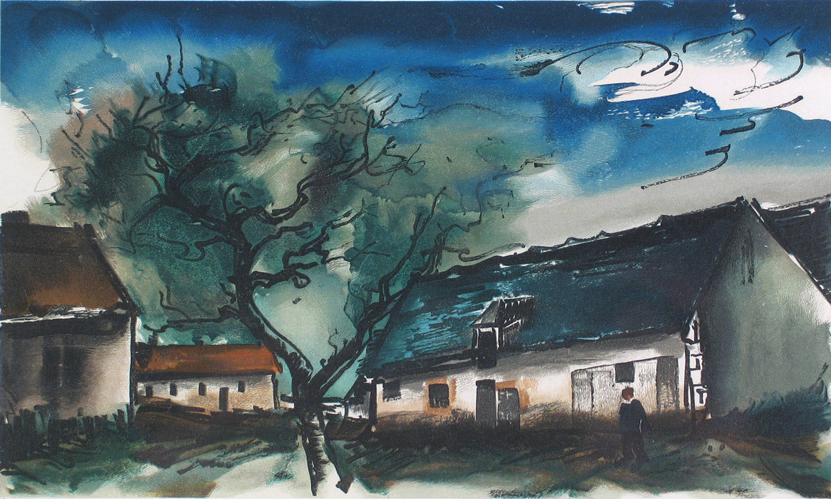 Vlaminck was born in Paris of ‘bohemian’ musical parents in 1876 and he in turn became an accomplished musician. It was only in 1900 when he met the painter André Derain that he started to take art seriously. Vlaminck’s typical subject matter became rural landscapes, often with overcast skies or storm scenes, lonely village streets or cottages and still-lifes.