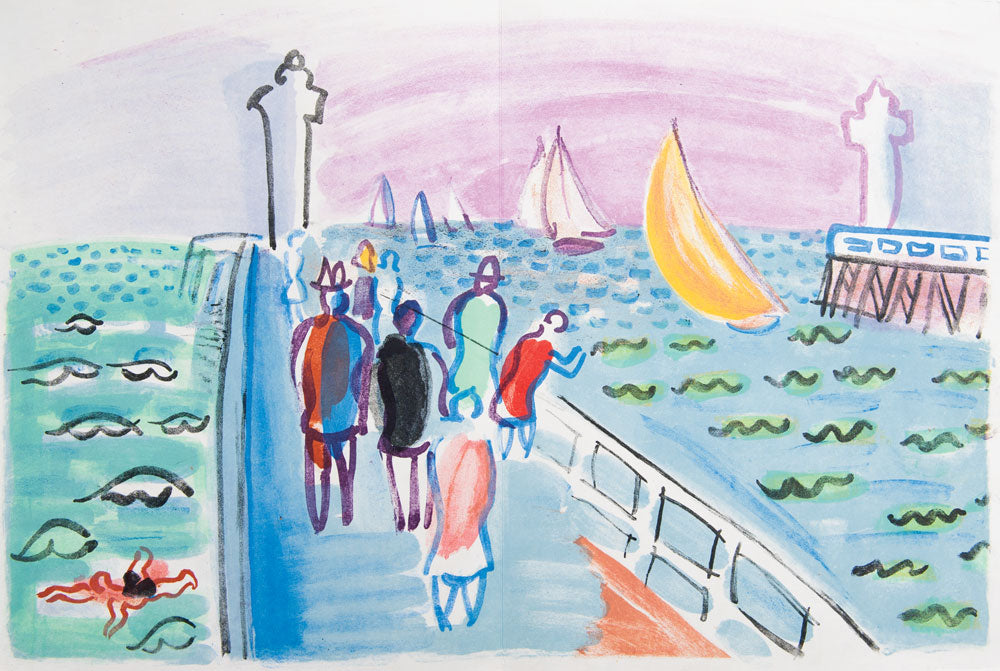 Dufy’s work is characterized by brightly coloured drawings suiting the glittering scenes of luxury and pleasure he favoured; the accessibility of his work lent itself to commercial advertising and was widely copied as a result. Dufy died at Forcalquier in 1953 and was buried near Matisse in Cimiez, a suburb of the city of Nice.