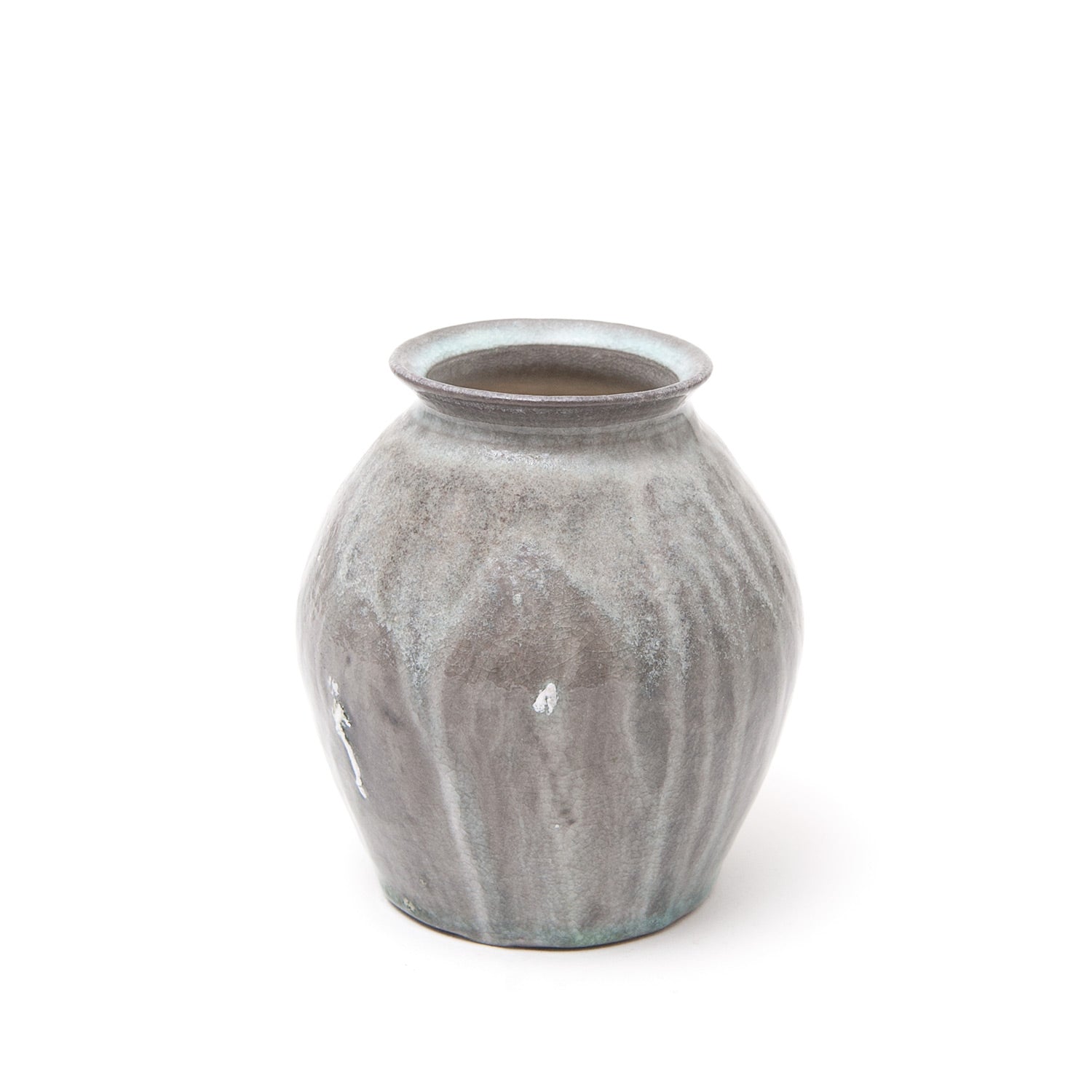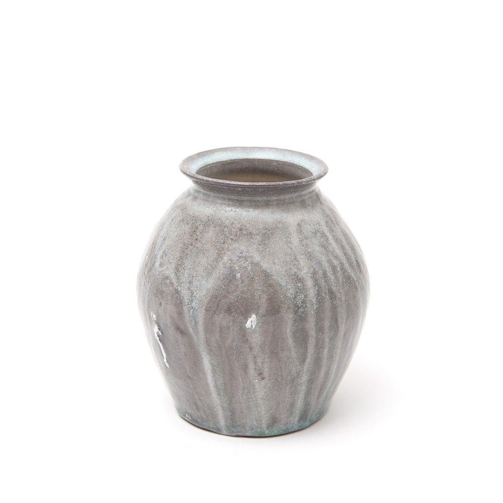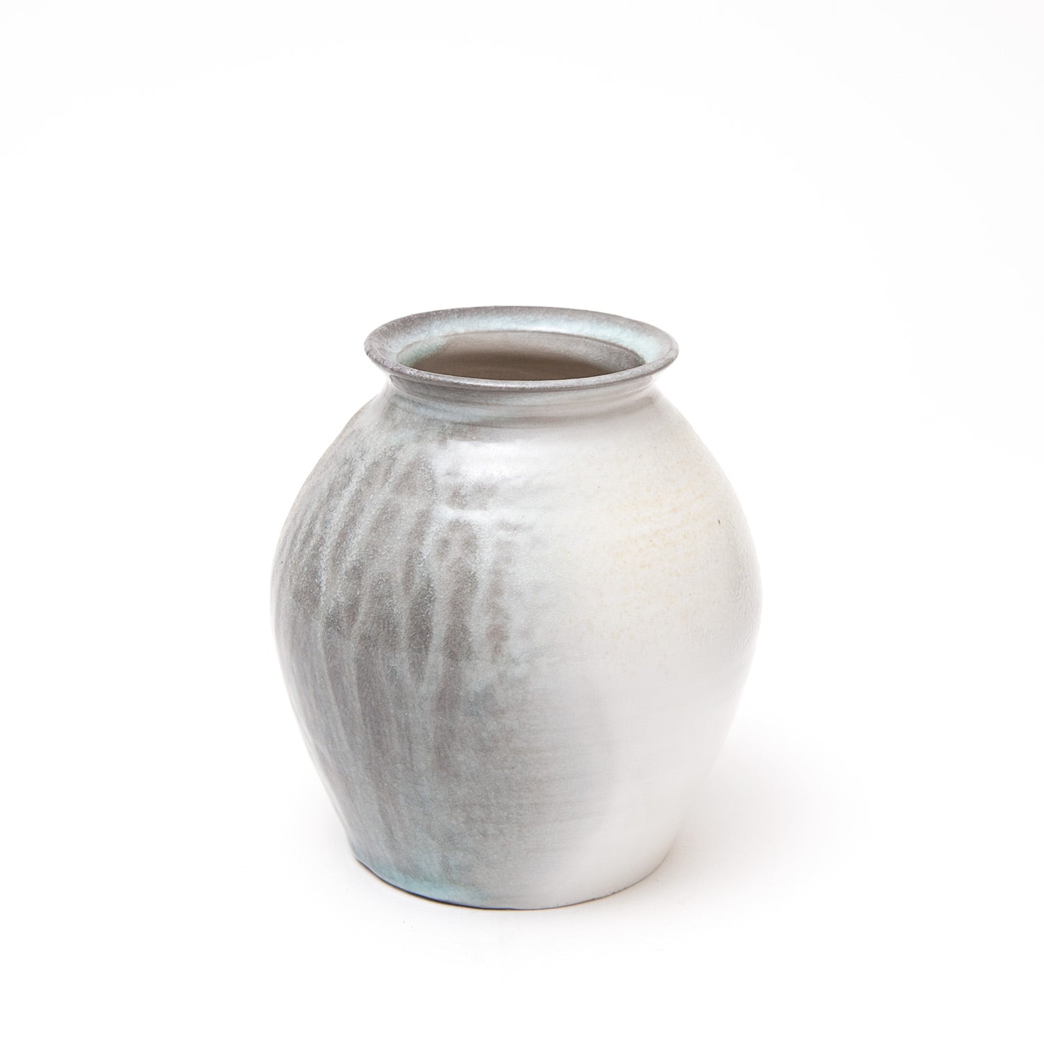 His square-lipped pouring bowls are refined with a touch that belies the coarseness of his clay, while blushing wood-fired porcelain bottles shimmer with pink and purple pearlescence.