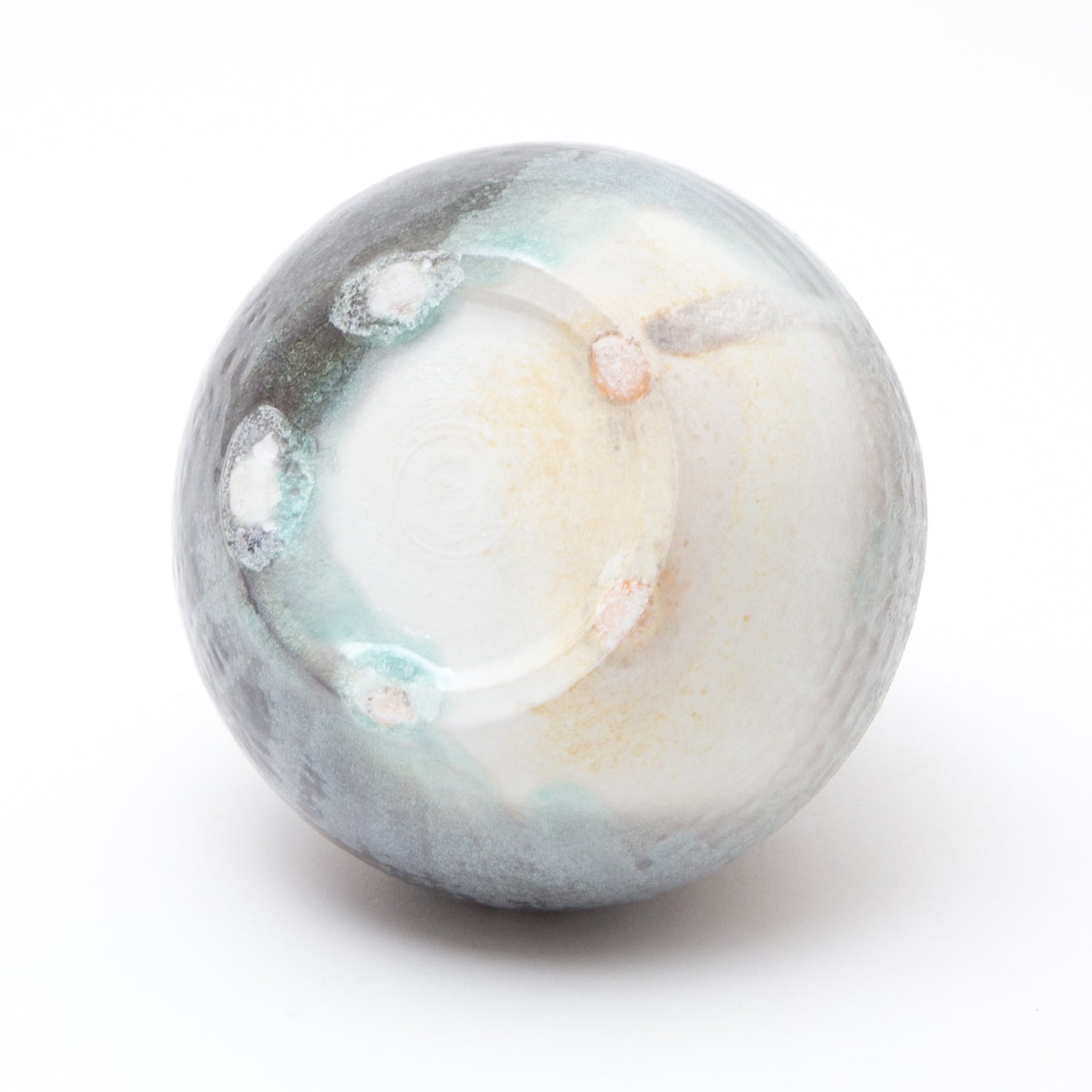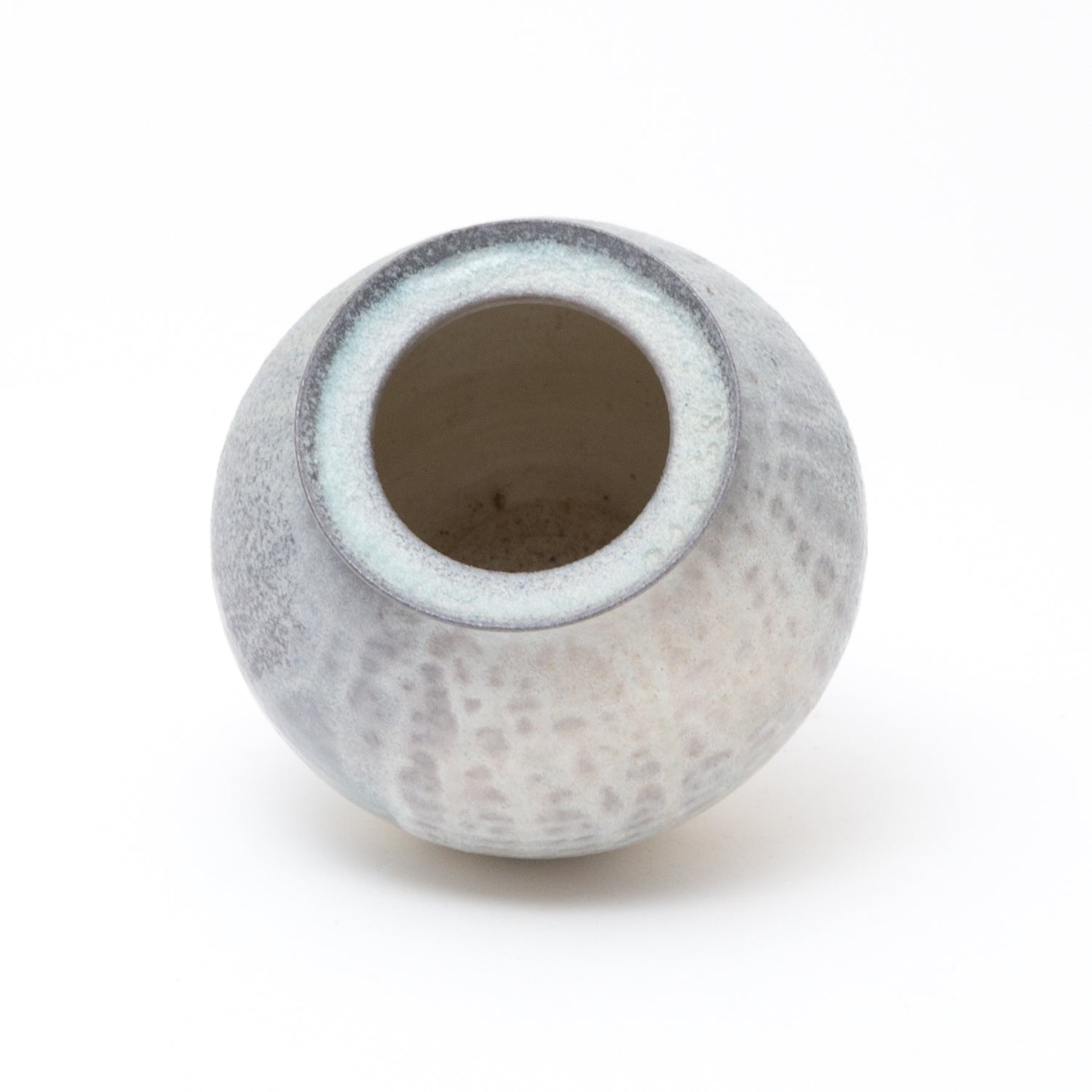 His square-lipped pouring bowls are refined with a touch that belies the coarseness of his clay, while blushing wood-fired porcelain bottles shimmer with pink and purple pearlescence.