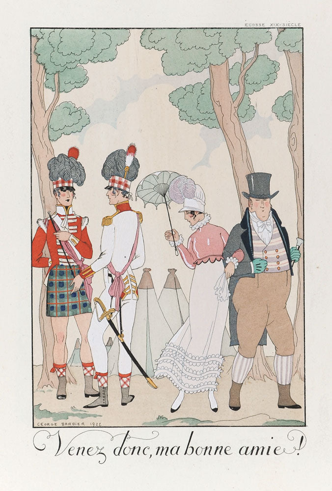 Barbier’s illustrations and pochoir prints from the 1920s are widely considered to epitomise the spirit of Art Deco and Jazz Age Paris with their combination of diverse influences such a Orientalism, Aubrey Beardsley, classical Greek vase decorations and 18th century French paintings. He died in 1932 at the zenith of his artistic career, with regular contributions to L’Illustration magazine.
