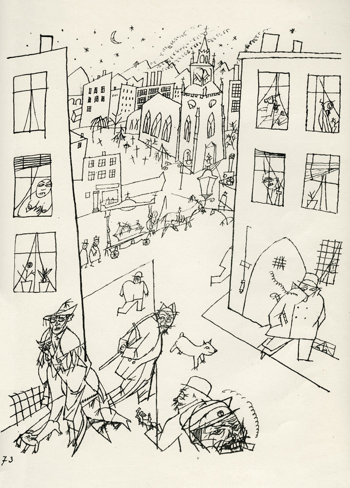 Grosz’s wartime experiences deeply affected his political outlook. He began to convey his hatred of German militarism in satirical images, though his subject matter was soon noticed by the authorities: Grosz was on one occasion prosecuted for indecent representations, which offend the sense of modesty and morality of a person of normal feeling. Inevitably, Grosz was hounded by the authorities and in 1933 he fled to America to settle permanently, returning to Berlin just once before his death there in 1959.
