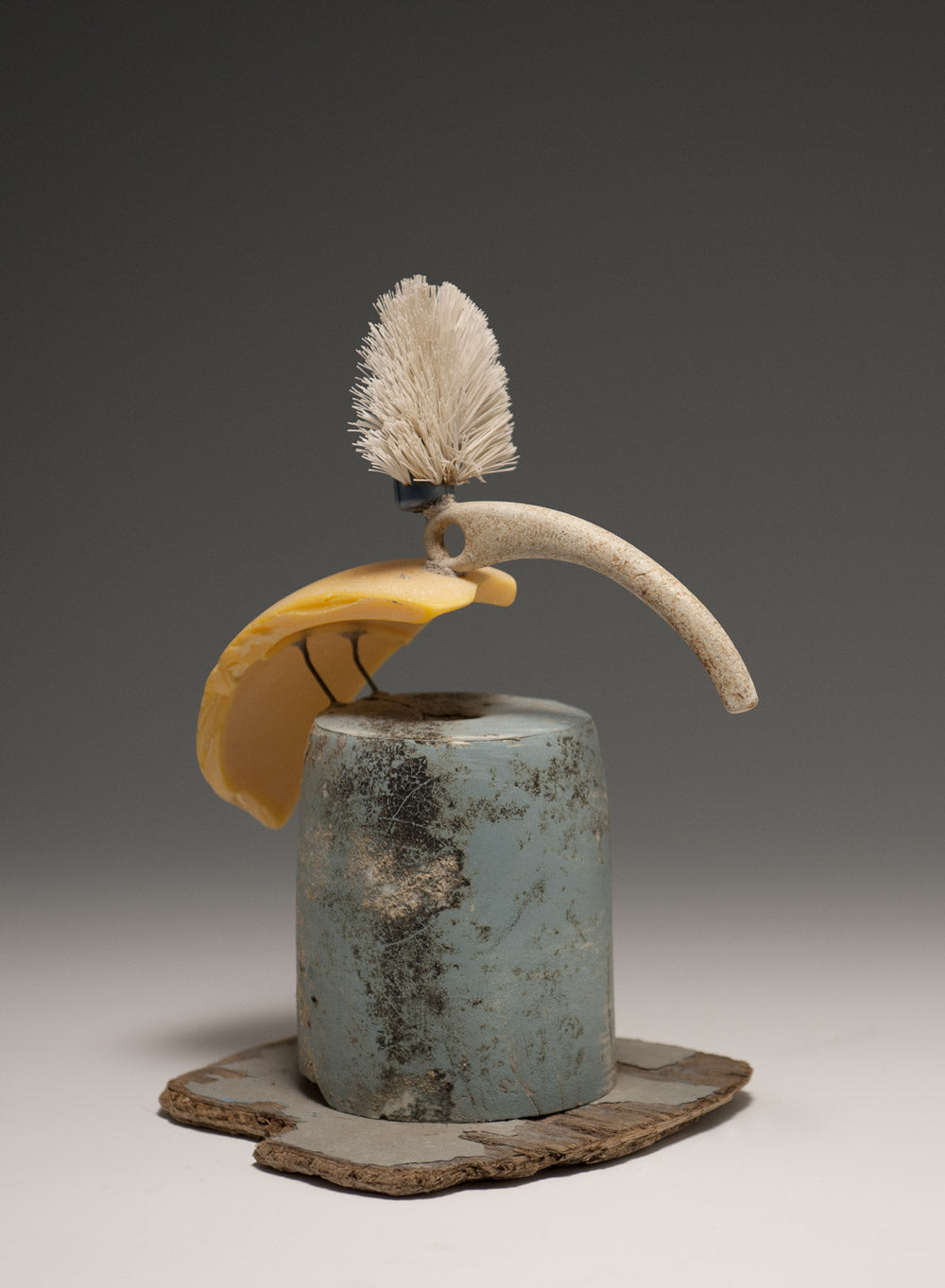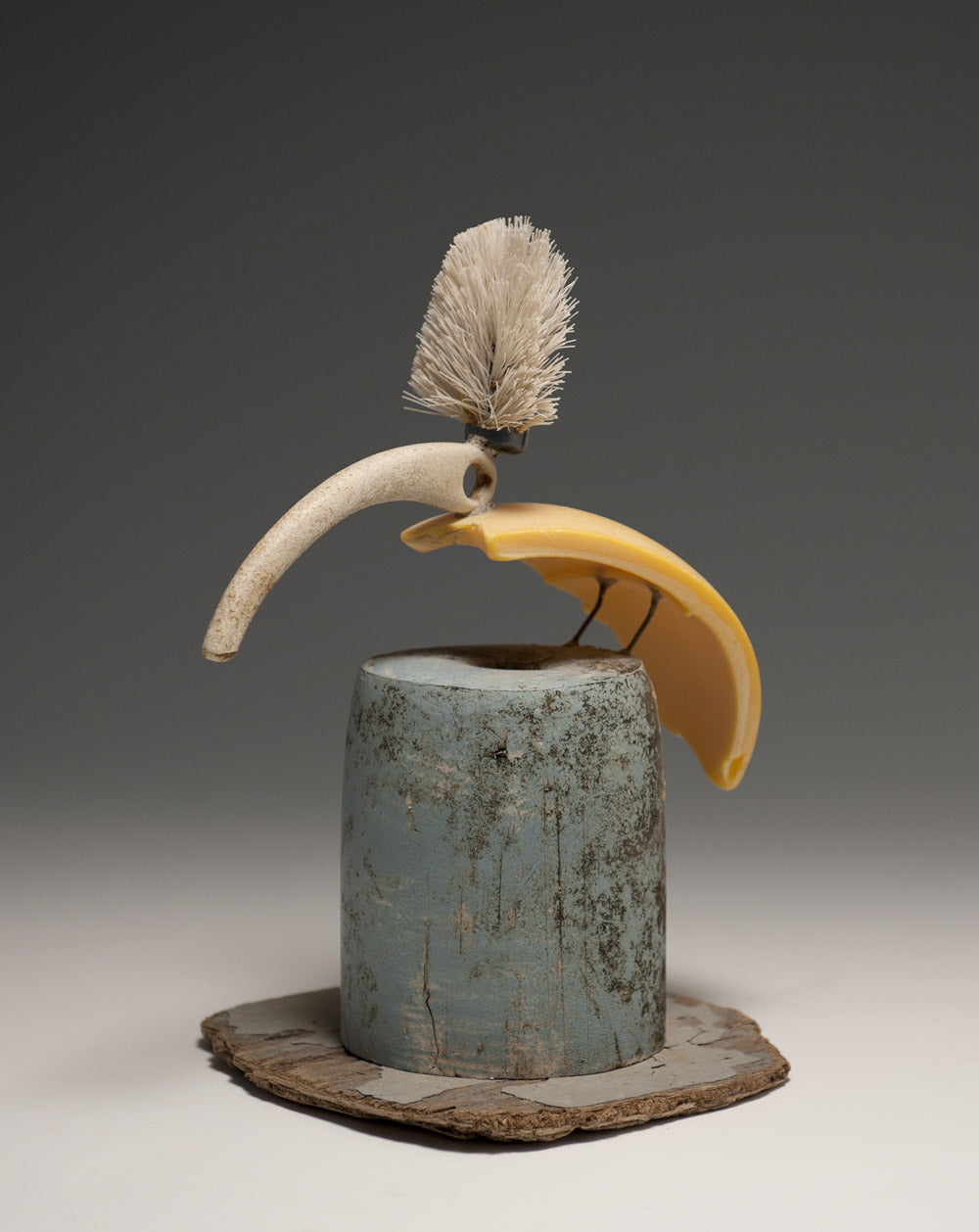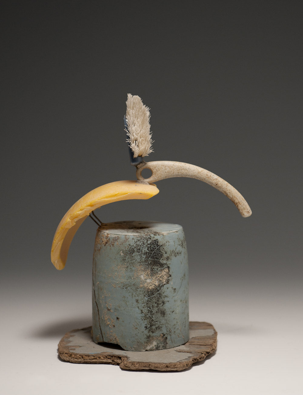 He is now based in Borth near Aberystwyth in Wales, where the flotsam and jetsam from the nearby sea is his only source of materials. Working with found objects, nothing is changed - simply introduced to one another. His driftwood pieces, usually birds, boats or mythical beasts, are full of his passion, integrity and wonderful humour.