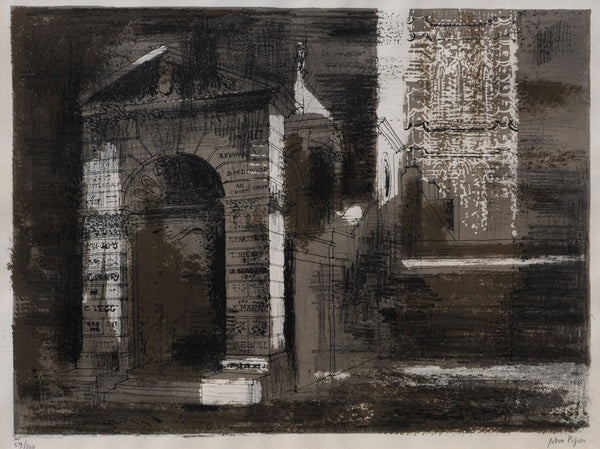 Piper experimented with printmaking from as early as 1923 when he produced four wood engravings. Piper’s prints embody his love of Britain through their depiction of its art, architecture and topography. However frequently underpinning their design, as the artist Rigby Graham has indicated, are the elements of collage, construction and assemblage that featured in his modernist work of the early 1930s.