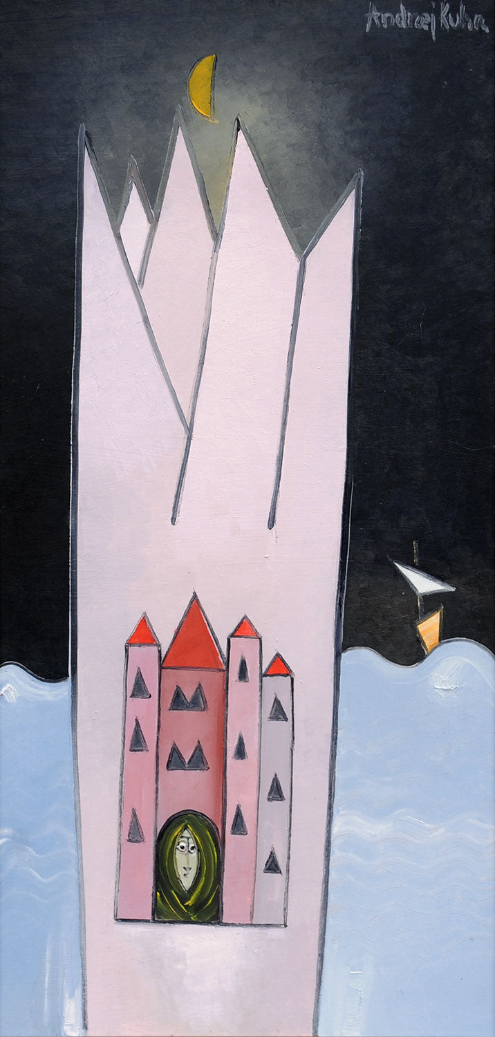 The Kuhn family spent several years in refugee camps in Iran, Palestine and Egypt and much of the subject matter and imagery of Kuhn’s paintings seems to originate from that period of his life. He arrived in England in 1947 and won a scholarship to the Chelsea School of Art at the age of twenty-four.