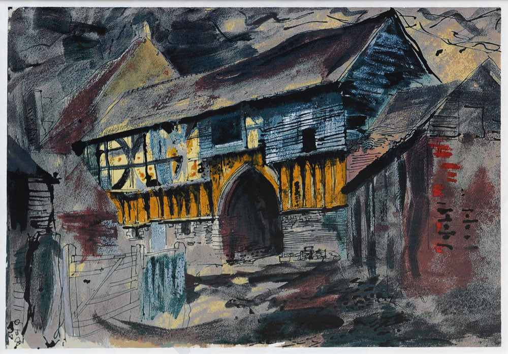 Piper experimented with printmaking from as early as 1923 when he produced four wood engravings. Piper’s prints embody his love of Britain through their depiction of its art, architecture and topography. However frequently underpinning their design, as the artist Rigby Graham has indicated, are the elements of collage, construction and assemblage that featured in his modernist work of the early 1930s.