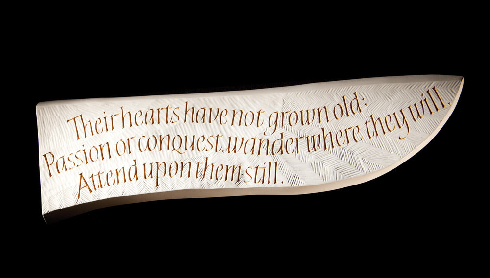 After a year Wenham left research and for the next 23 years taught in secondary, primary and special schools, with 9 years’ lecturing at the University of Leicester. He first exhibited his letter-cutting work in 1982; since 1984 it has been shown in the major British exhibitions of lettering arts. Wenham’s work is held in the Crafts Council’s Permanent Collection and in private collections in Britain, the USA, Germany, Japan and Puerto Rico.