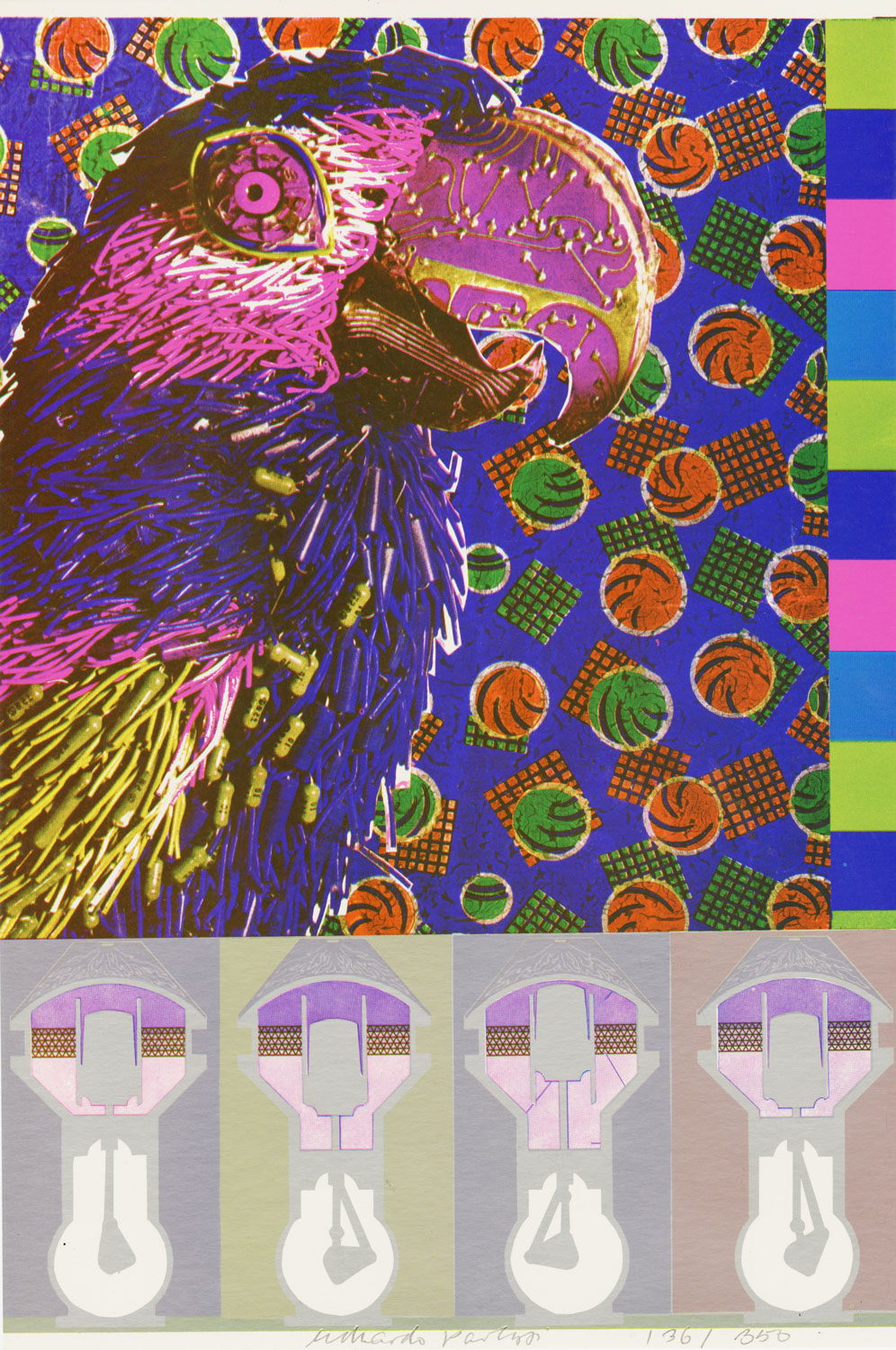 A significant member of the Group, Paolozzi greatly influenced the development of Pop Art. He emerged fully onto the Pop Art scene in 1962 with his abstract, robot-like figures such as Four Towers and Solo, but of all his work his screenprints are said to have had the largest impact on Pop Art. He taught all over the world as guest professor and lecturer, and was knighted in 1988. Eduardo Paolozzi died in 2005.