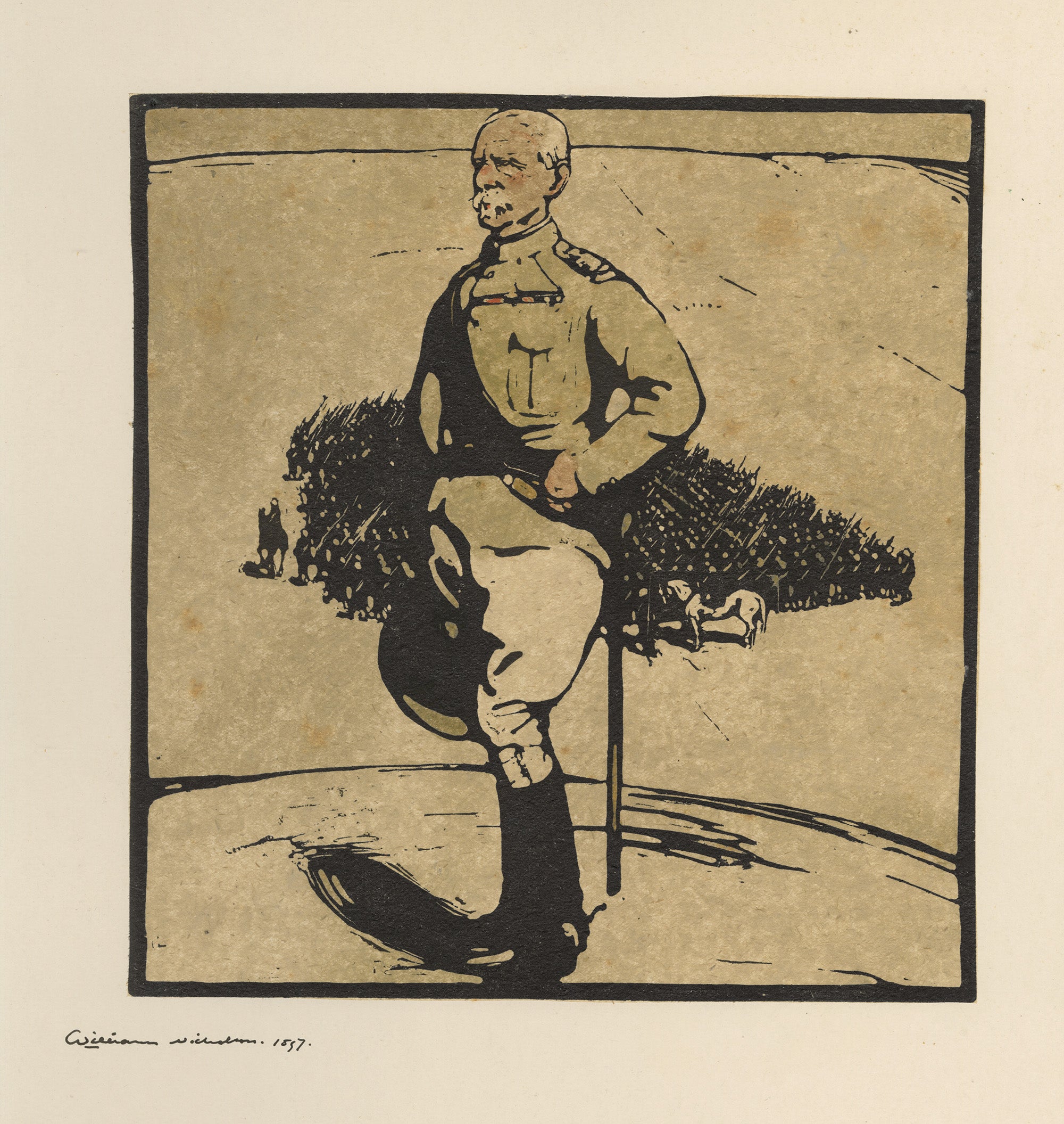 In 1897 Nicholson made a woodcut of Queen Victoria which established his name with the public. During the same year he worked upon An Illustrated Alphabet for the publisher William Heinemann, important in providing Nicholson with an opportunity to develop his talents as an engraver. He was appointed a Trustee of the Tate Gallery from 1934-39 and knighted in 1936.