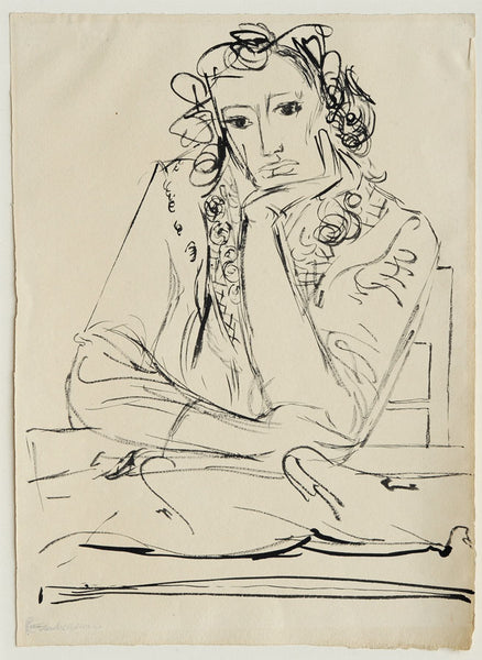 Settling in Paris, he became friendly with Picasso and Otto Dix, whose influence on his work is apparent. In 1940 Adler joined the Polish army and travelled to Glasgow where he had a great impact on the artists Robert Colquhoun and Robert MacBryde. He settled permanently in London in 1943 where he was to influence a number of young British painters including John Minton, Keith Vaughan, Prunella Clough, Michael Ayrton and the poet Dylan Thomas. Adler died prematurely, aged just 53, in 1949.
