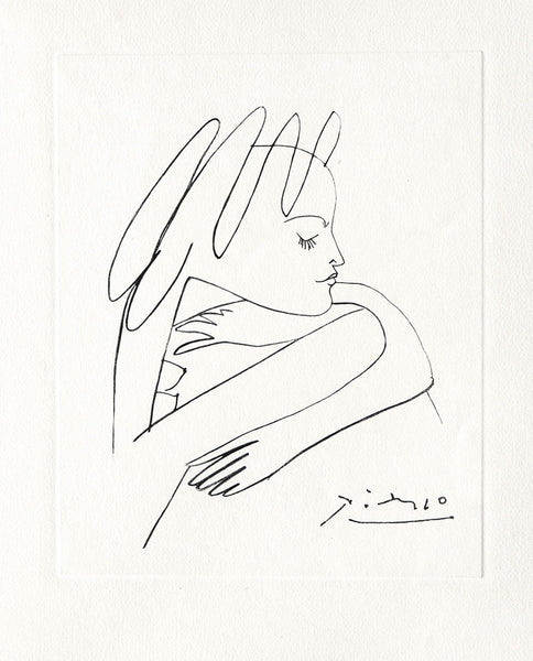 Printed on Arches paper, an engraving on copper after a Picasso drawing. This image is from the edition numbered from the edition of L, this one being XL. (These are aside from the edition of 150).