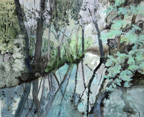 Jenny Grevatte is continually evolving and developing her ideas and methods. Recent themes include trees and woods, hedges, rooftops, huts , bookshelves, rock formations, sunflowers, artichokes, wild flowers and, her constant favourite, still life. Scale, format and composition are exciting challenges for her and recently she has been exploring the quality and mystery of changes of light in the landscape. A new and powerful theme is the moon, seen in all its varying moods and allowing Jenny to introduce a new palette of dark colours.