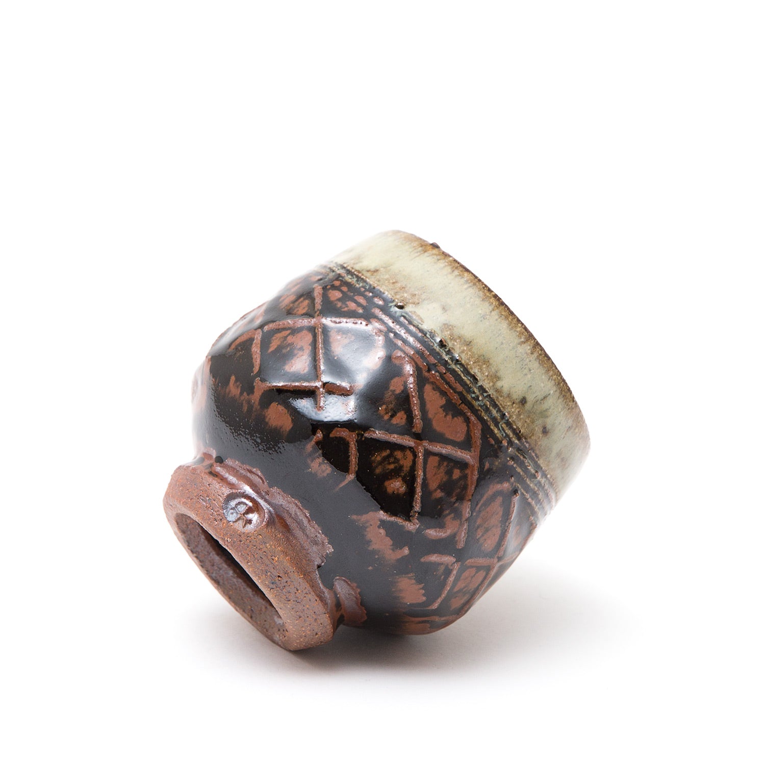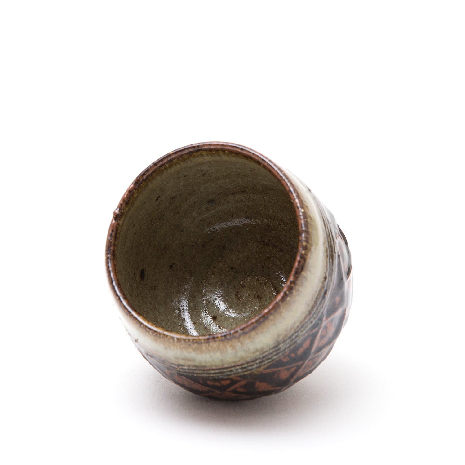 Phil Rogers was born in Newport, Gwent in 1951. He attended Newport and Swansea Colleges of Art and had originally intended to become a painter. While still at college in the early 1970s Rogers and a friend taught themselves to throw. Their only guidance came from Bernard Leach’s A Potter’s Book and their throwing practice came in the form of competitions to see who could produce the biggest pot.